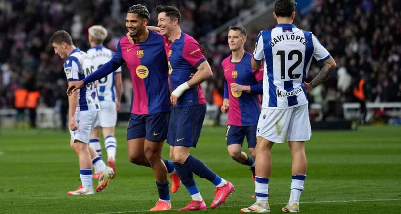 A partida começou com a Real Sociedade mostrando mais iniciativa, mas o jogo mudou completamente aos 17 minutos do primeiro tempo. Em um contra-ataque rápido do Barça, o zagueiro Elustondo derrubou Dani Olmo, que estava livre para marcar. O árbitro considerou a falta como impedimento claro de gol e expulsou o defensor com cartão vermelho direto.