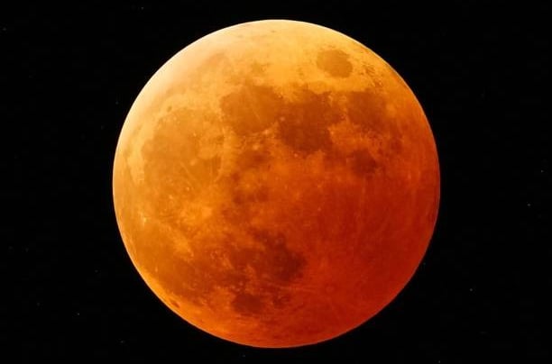 Durante o eclipse lunar, toda a luz que ilumina a Lua passa pela atmosfera terrestre. Na prática, é como se o pôr do sol fosse refletido na superfície lunar.